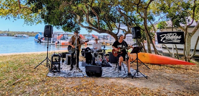 who entertain folks down by the Noosa River every Thursday morning (weather permitting) from 10am to 12 midday with their smooth rock classics from the 60’s to the 90’s.