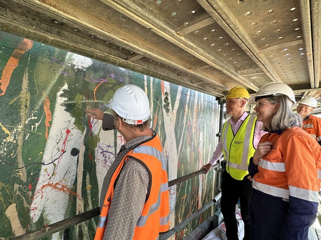 Mayor Frank Wilkie adds a final touch to the mural. (Supplied) 522367_01