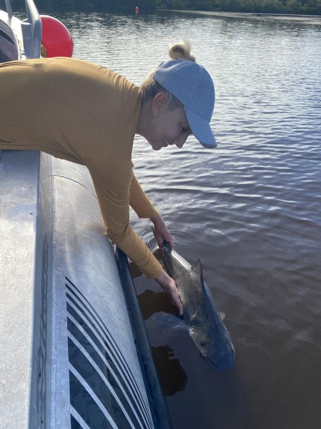 She said by taking the detected information and plotting it on a river map, they can see the neonates remain in the safer, shallow waters of Lake Cootharaba, juveniles move down to Lake Cooroibah, while the sub adults start to push out into Laguna Bay and explore what’s in the bay where they face their first exposure to other large sharks and predators.