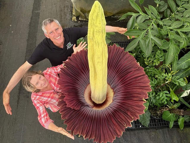 Neil and Lisa Paterson have some rare and un- usual plants at their Goomboorian nursery but few as odd as the Titan Arum or Corpse Flower.