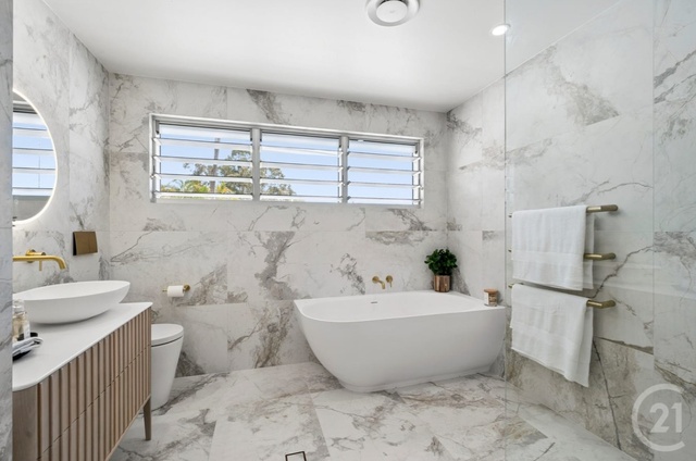 There’s a marble semi-island breakfast bar; and a range of Siemens premium appliances such as oven, cooktop and integrated fridge as well as a Miele dishwasher.