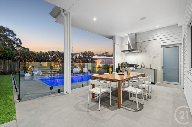 The main living area has five-metre high ceilings and direct access to the full-length entertaining verandah.