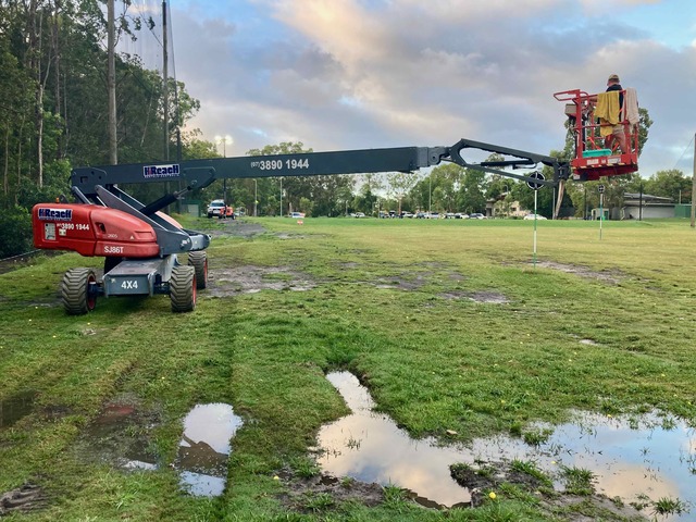 We were delivered one mobile flood light tower, followed by a second one a few days after, paid by the Golf Club and that, installed at the front and at the back of the driving range enabled to lit up the area and made the netting more visible. We also installed 2 lines of reflectors.