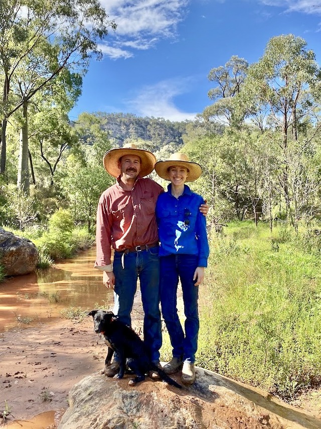 Claudia and partner Miles Burow work on the 3755ha Benn family property, Mount Kingsley, in Arcadia Valley.
