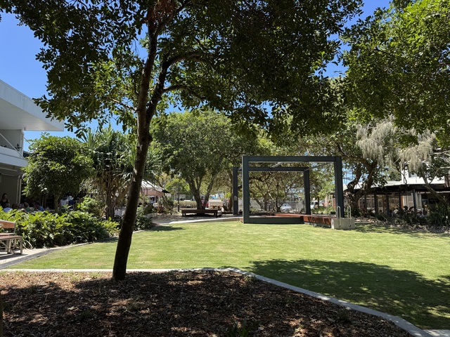 Upgrades include renewed garden beds and turf, replacement of worn timber elements, new seating around the iconic Tuckeroo tree, plus an extension of the rock wall at the southern end to prevent erosion.