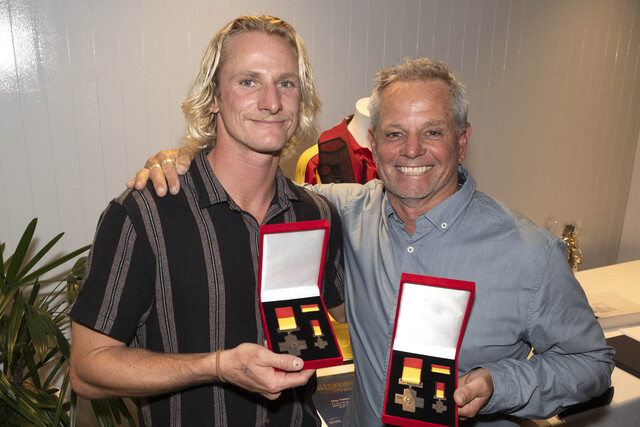 Last Friday night the men were presented with Surf Life Saving Queensland Bravery Medals at Sunshine Beach surf club in recognition of their heroic rescue in March this year.