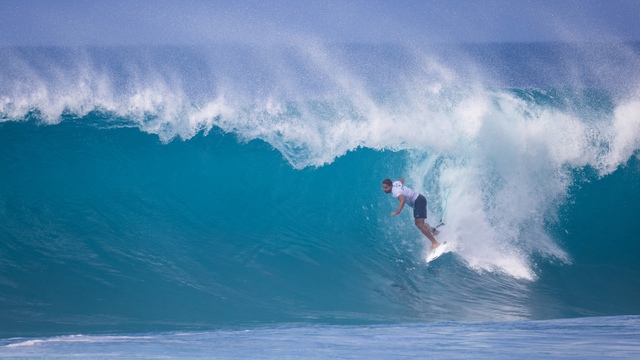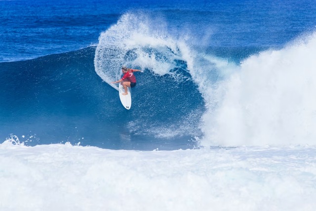 Finals day for the women followed a similar pattern to that of the men, with solid, clean Pipe and Backdoor on offer for the first half and tricky onshore junk for the second. Strangely though, the women didn’t really take advantage of the good conditions while they lasted, with only six quarter finals qualifiers scratching into double figure heat scores.